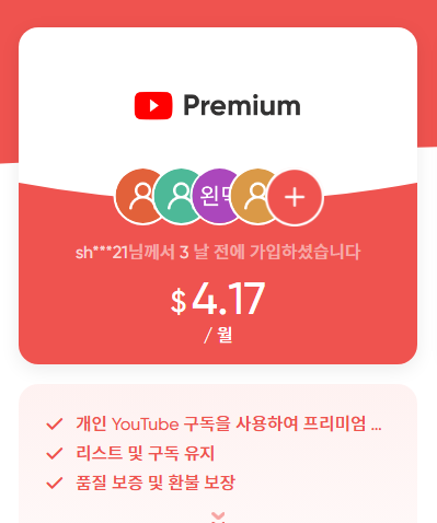 | 넷플릭스 프리미엄 | 17,000원 | 8,900원 | 약 47% |